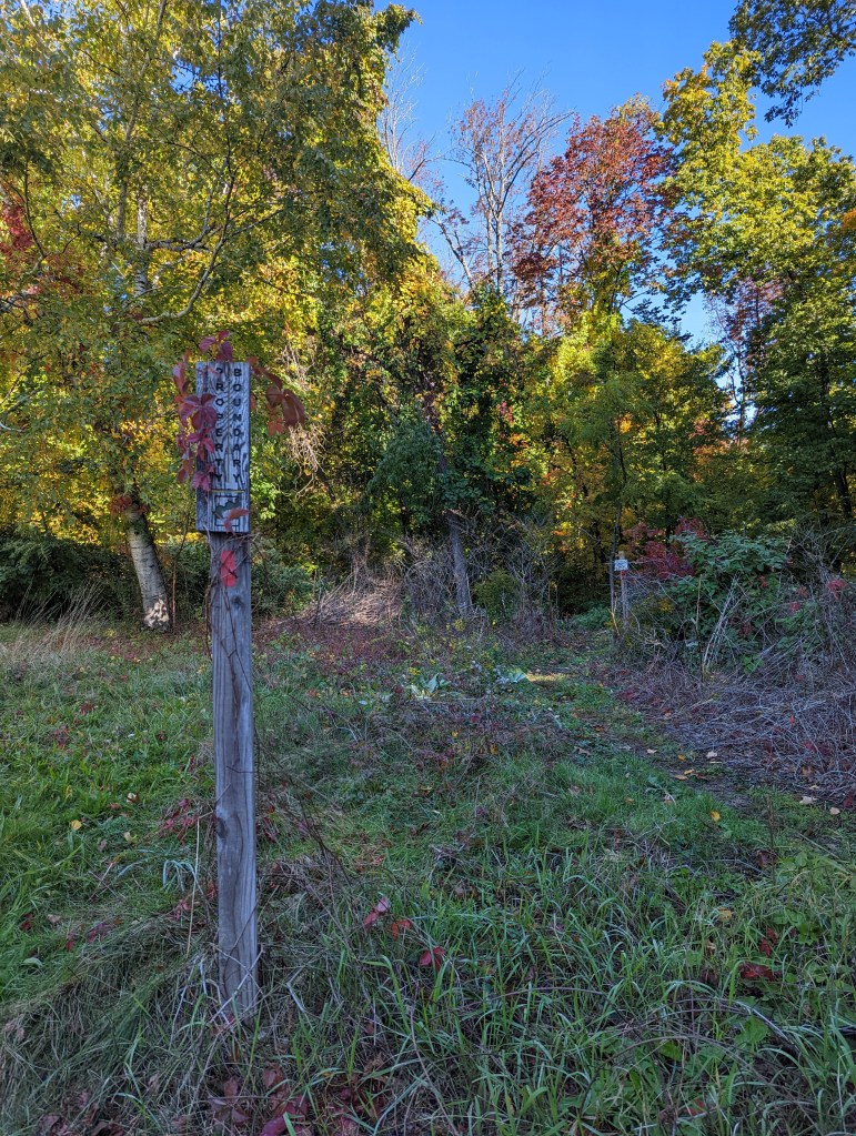 On Tuesday, I decided to try out one of the trails listed on Greater Worcester Land Trust’s “Hike Week”. I have enjoyed hiking some of GWLT’s trails with my family. But, for the first time, I wanted to try a solo hike. I have often passed by the GWLT sign on Moreland Street and wondered about this site. After checking their website, I found out that there was parking nearby on Orrison Street. At first, I almost turned away – there are plenty of “No Trespassing” signs. However, when I looked to the left, I saw that I had overlooked a small GWLT sign covered with Virginia Creeper.