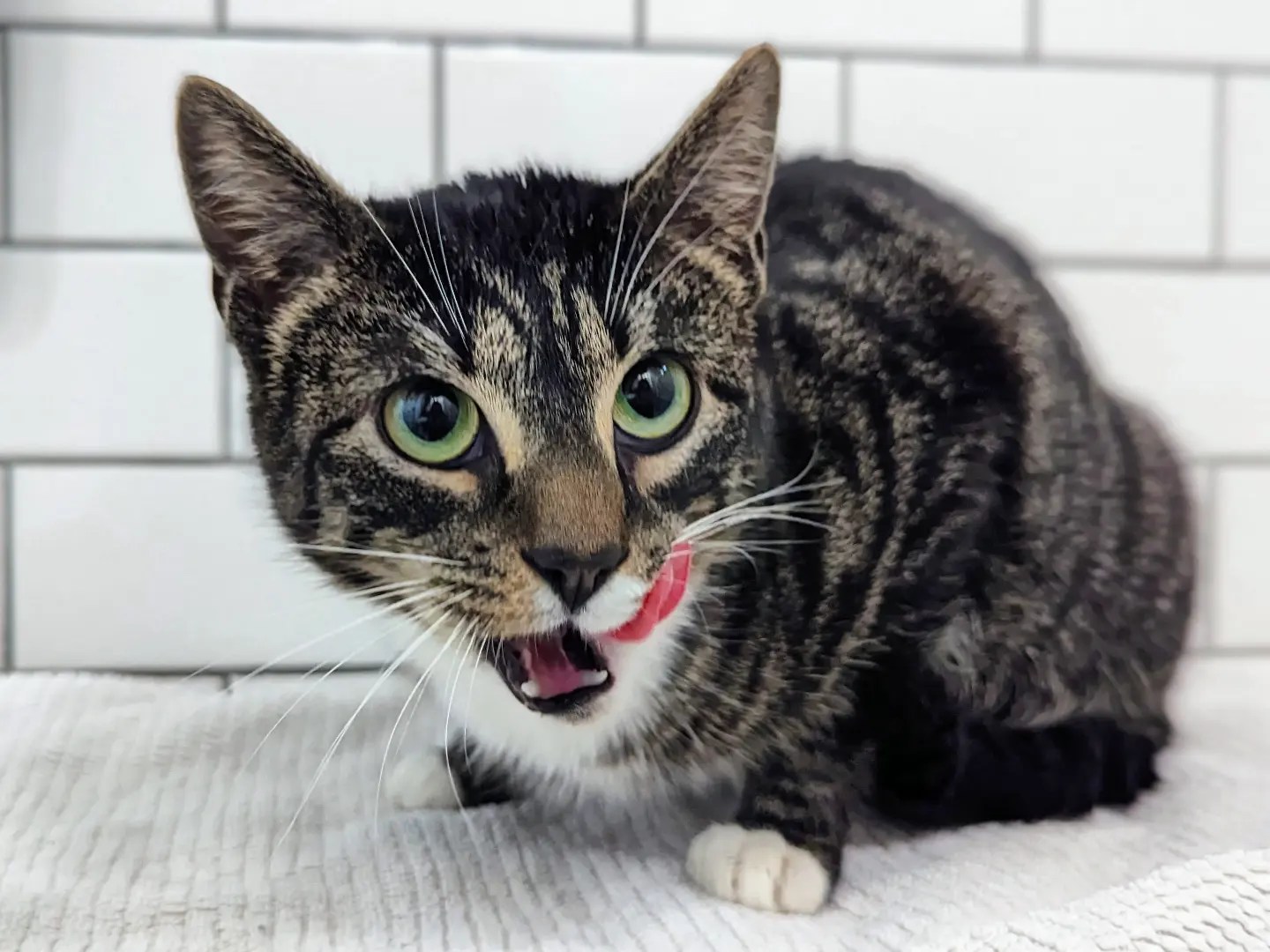 I had to pack up for a bit in order to pick up my son from school. I brought the trapped cat to my house. I evaluated her in the bathroom. She was friendly, so I set her up in the bathroom. She was very affectionate. I noticed that she was pregnant.