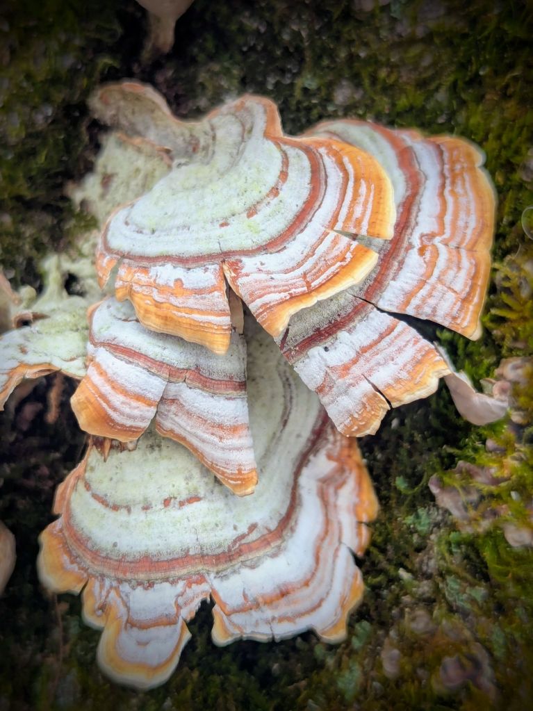 Saint George Forest 3/5/2025 Posted bychristinepsparksMarch 10, 2025March 10, 2025Posted inExploration, UncategorizedTags:#gwlandtrust #hiking #hikeworcester #newengland #massachusetts T-Rex Guarding the Trail Metatrichia Slime Mold Stereum ostrea – false turkey-tail fungus My joyful hiking companion Trametes versicolor – turkey tail fungus Ellychnia corrusca – winter firefly Share this: Click to share on X (Opens in new window) X Click to share on Facebook (Opens in new window) Facebook Like Loading... Related