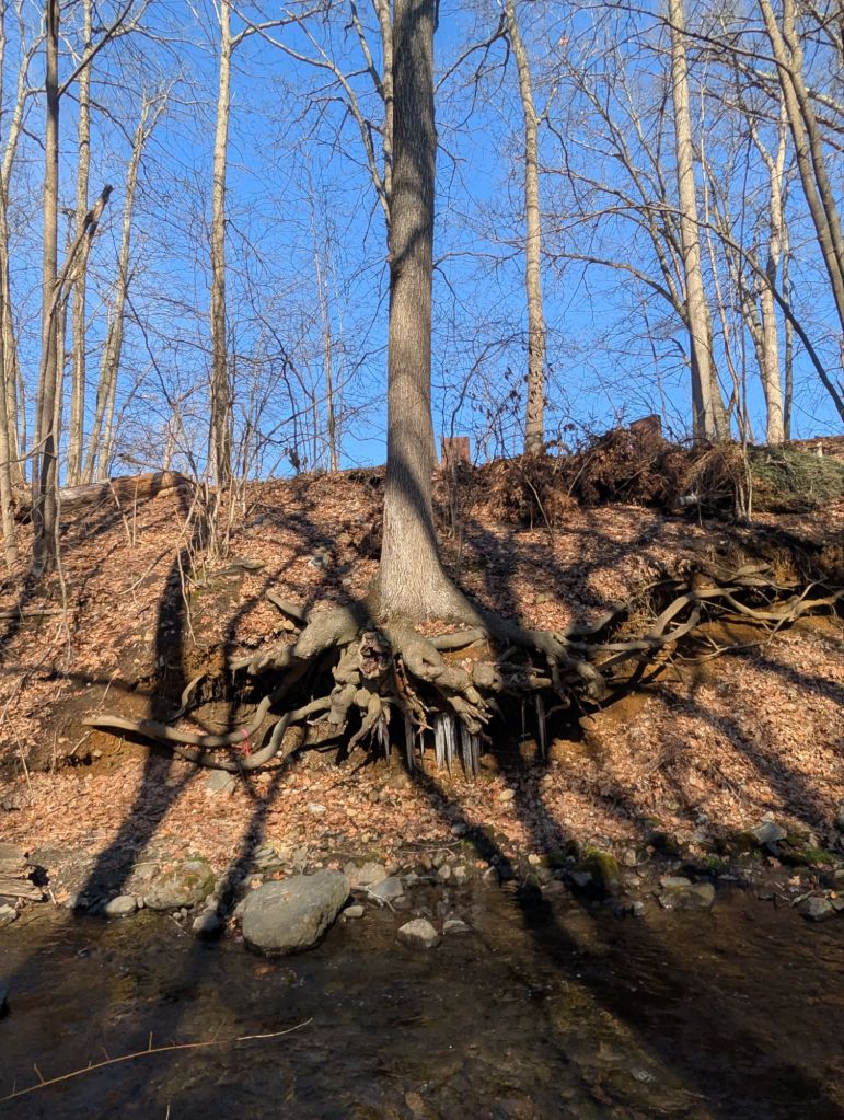 A tree hangs over the bank